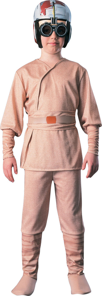 Tan polyester tunic and pants with attached foam lined fabric boot tops. Includes belt and lightweight plastic face mask with elastic strap. Fits most children sizes 5 to 7.