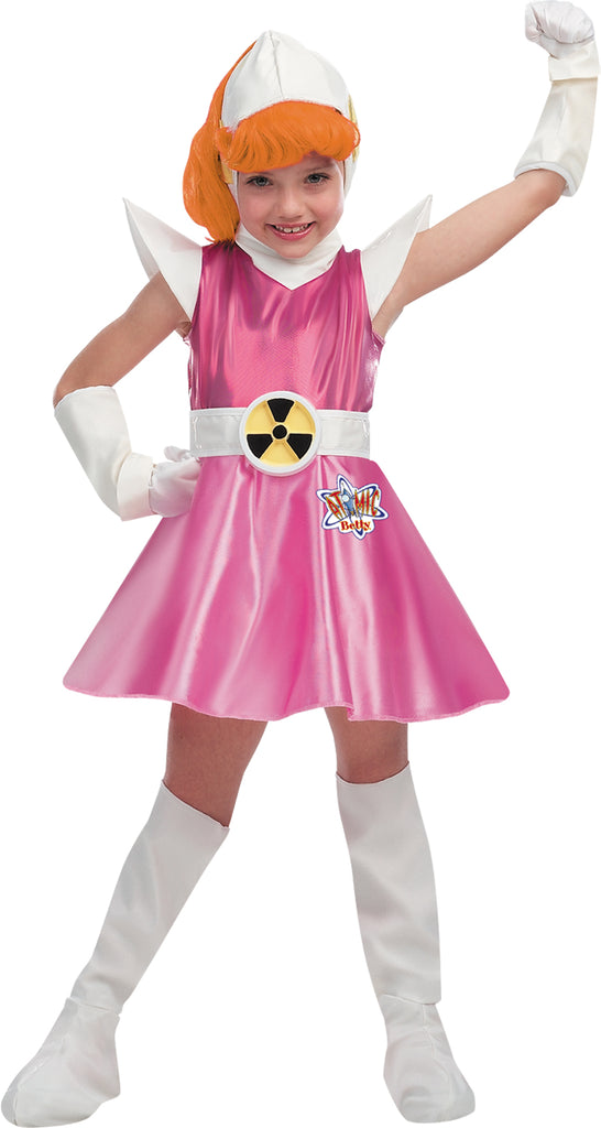 Dress with built-in petticoat, Atomic Betty logo on front of dress, attached belt and vacuform buckle. Child size Small (4-6) *Gloves, headpiece and bootcovers are not included.