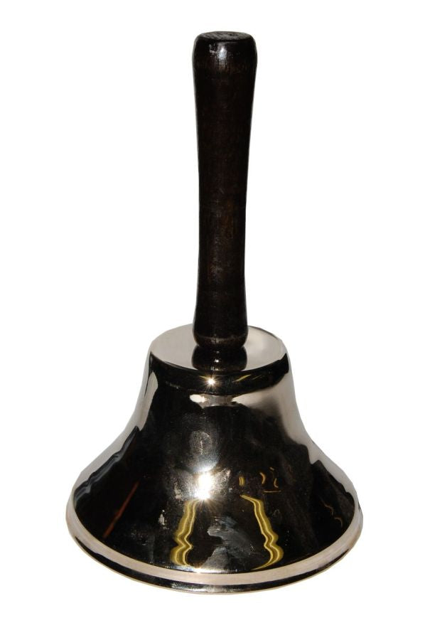 Perfect for Santa! Great for a theatrical production also! All metal bell has a wooden handle. Loud, clear ring. Total height is 6 1/2in tall. Bell is 2 1/2 tall, handle is approximately 4 inches long. 4 inches in diameter.