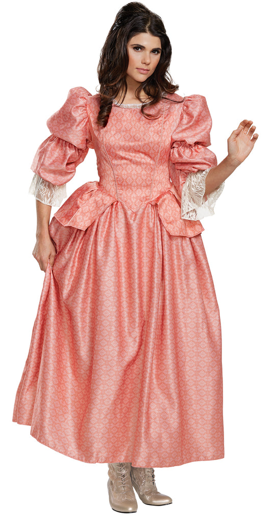 You can become the heroine Carina featured in the new blockbuster movie sequel Pirates of the Caribbean: Dead Men Tell No Tales with this great dress! The costume includes Beautiful ankle length dress with poofy sleeves and high neckline, which gives the dress a real classy look. Fits womens sizes 12-14.