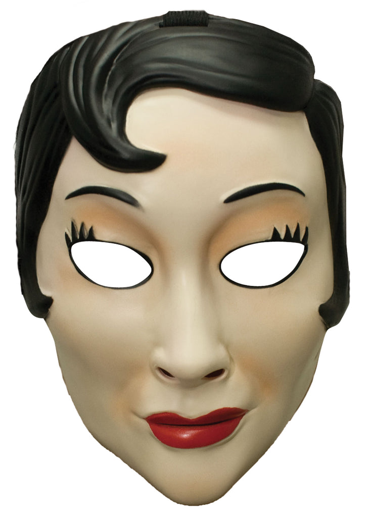 Lightweight, easy to wear, and oh-so creepy! Plastic face mask with netted eyes and elastic strap. Mask includes foam square at forehead for added comfort and wearability. One size fits most.