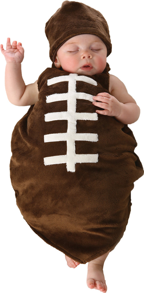 Perfect costume for the family's smallest team member! One-piece bunting with matching hat are made from soft plush fabric with white trim laces. Fits toddler sizes 3-6 months.