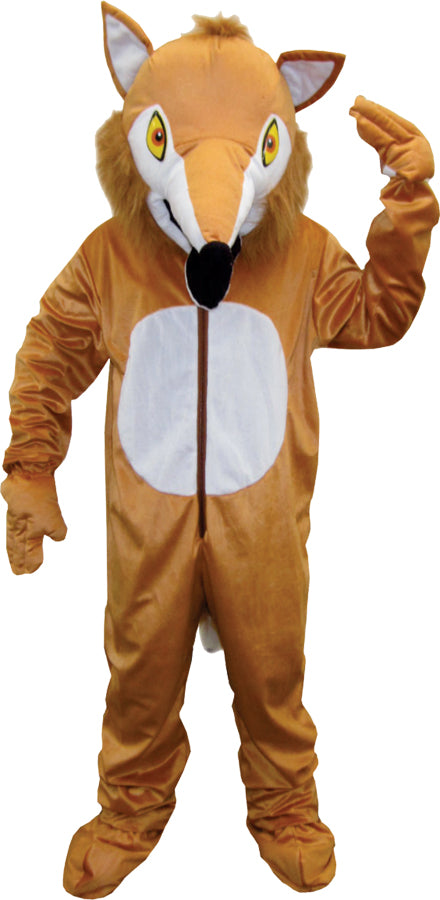 Jumpsuit features a front zipper and a tail in back. Mask/head has fur trim and allows vision through the mouth opening. Includes mittens and shoe covers. One size fits most. Height up to 75 inches, waist size up to 60 inches. Machine wash gentle. Flame retardant. Polyester.