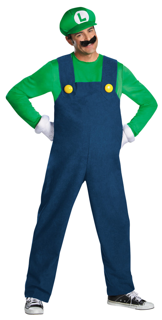 Jumpsuit, hat, detachable belly, pair of gloves and faux mustache. Fits males size 50-52.