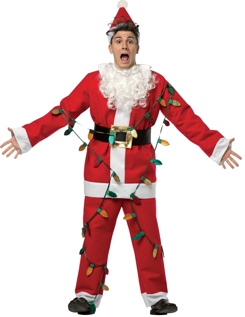 Look just like frustrated family-man Clark Griswold from the movie classic National Lampoon's Christmas Vacation in this great Light-up Santa Suit. Jacket with attached belt and lights, hat, pants and beard. One size fits most.