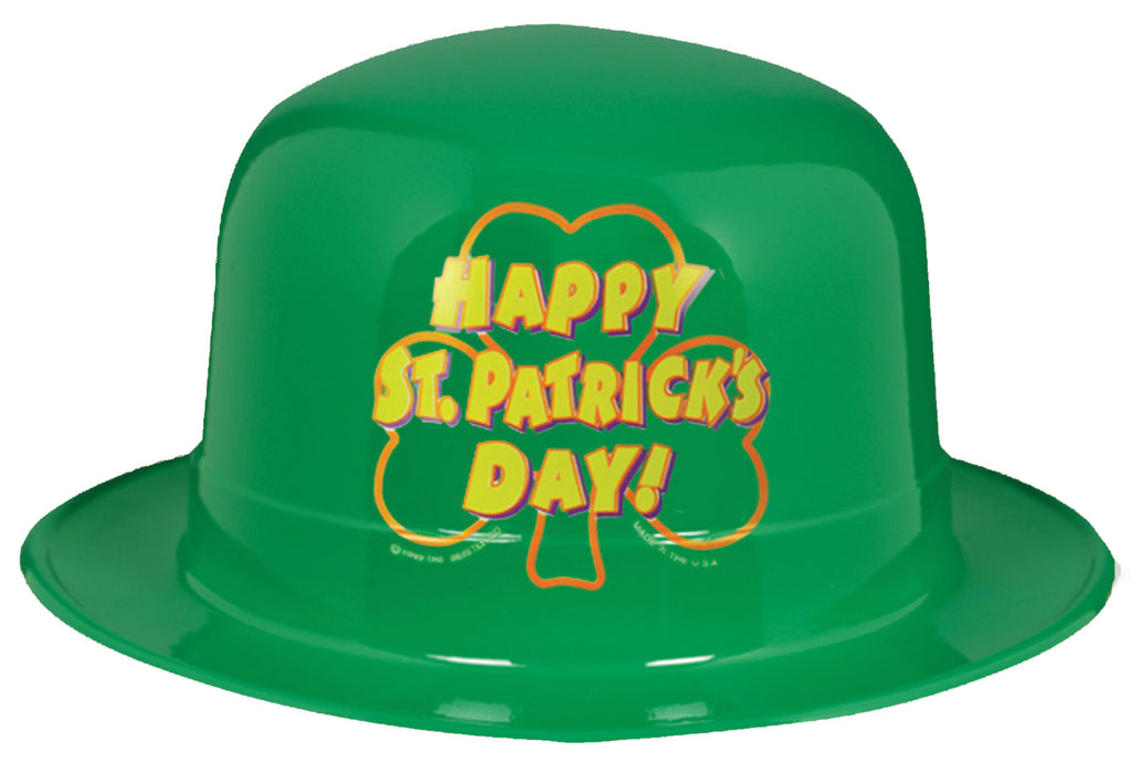 Make a festive statement in our Happy St. Patrick's Day hat! There is no wrong way to wear this lucky charm. Plastic. One size fits most. Just the accessory you need for St. Patrick's, parties, plays, and other fun productions and festivities! pack includes 5 hats
