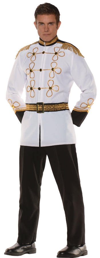 It may be good to be the king, but it's just as good to be the Prince! The perfect look for saving maidens! Zip front jacket with attached epaulettes, pants, belt. One size fits most adults. Waist 34"-38" and chest 42"-46".