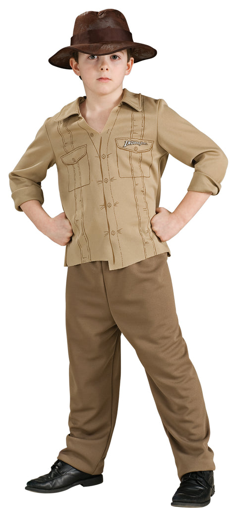 Now your child can dress up like the title character from the Indiana Jones series of movies! Shirt with khaki look, brown pants and typical Indy-looking fedora. Fits child medium sizes 8-10.