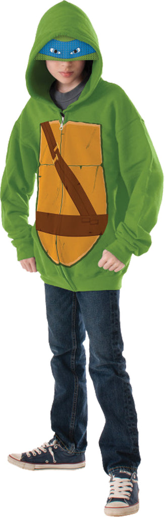 Keep yourself warm with this great Teenage Mutant Ninja Turtle hoodie! Green hoodie with printing on front and back of hoodie and attached mask. Leonardo. Child large fits sizes 12-14.