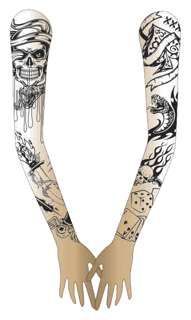 Toughen up your Halloween costume with this Tattoo Biker Shrug. This is your night to know what it feels like walk around with a full sleeve of tats. The shrug fits comfortably like a cardigan and features printed tattoo ink work. This tattoo shrug works great with biker, vampire or gothic-inspired outfits.