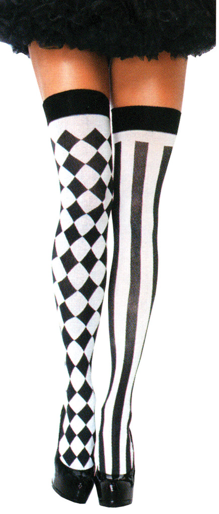 100% nylon Harlequin Thigh High stockings are perfect for that sexy harlequin costume, or even great with a little black dress! One size fits women from 90-120 lbs.